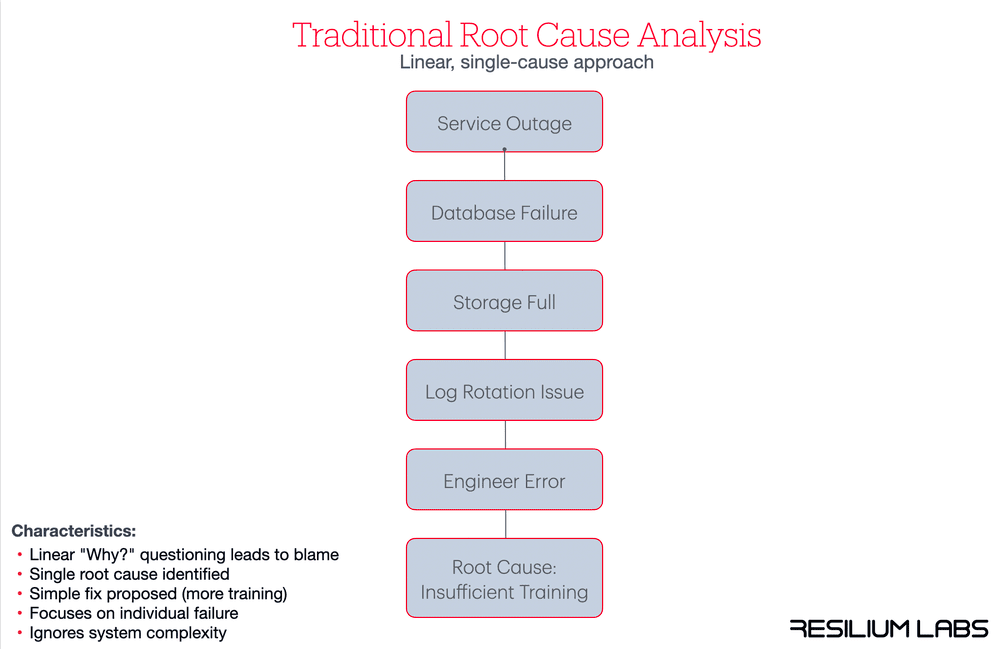 But if you really think about it, this analysis almost purposely created a linear story ending with "insufficient training." It implicitly blamed the engineer and missed systemic issues.