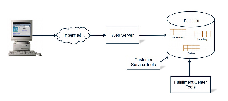 Since the same database was used by the bookstore, customer service tools, and fulfillment center tools, customer service operators had to log into the servers and run Unix commands.